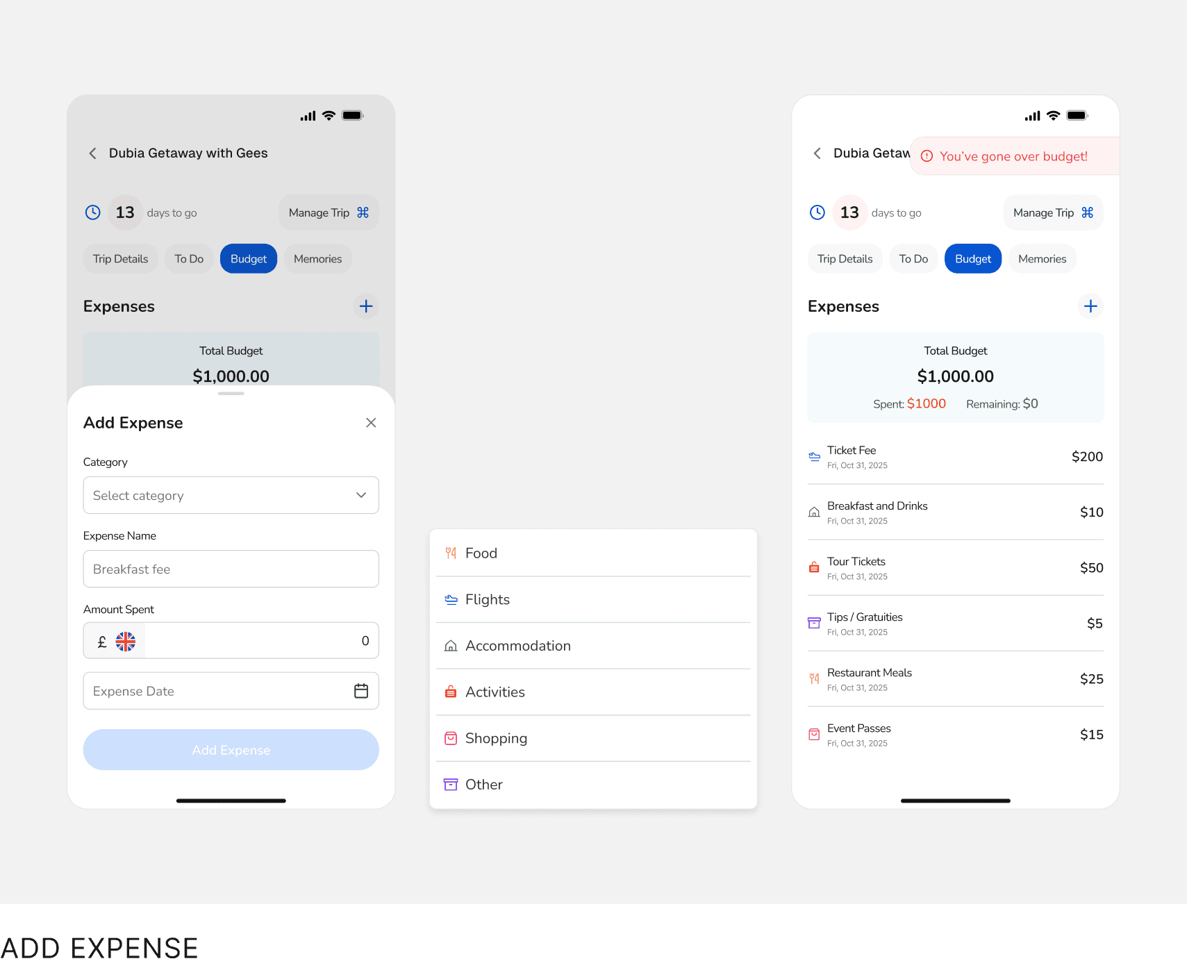 Users log expenses during trips to monitor spending.