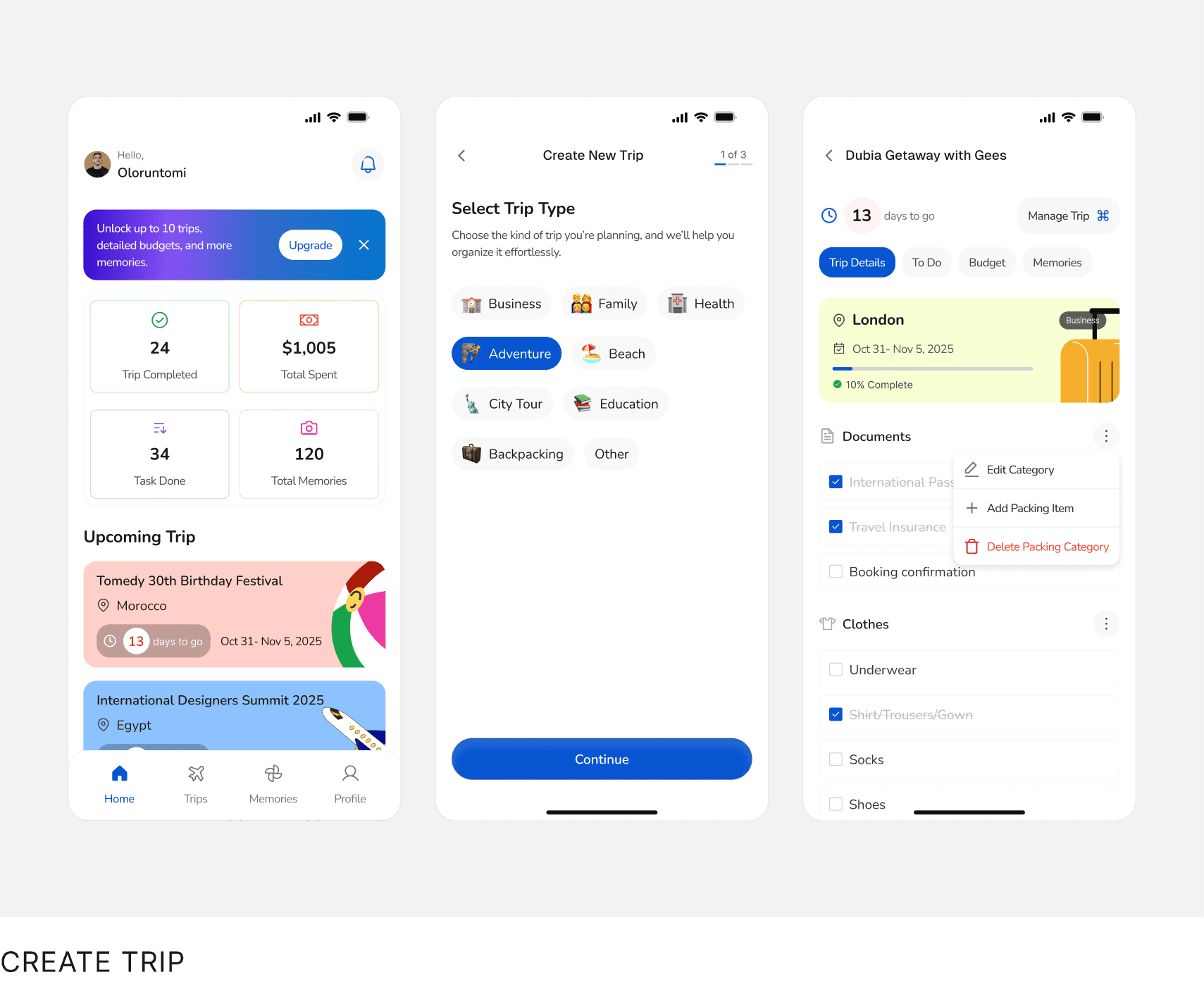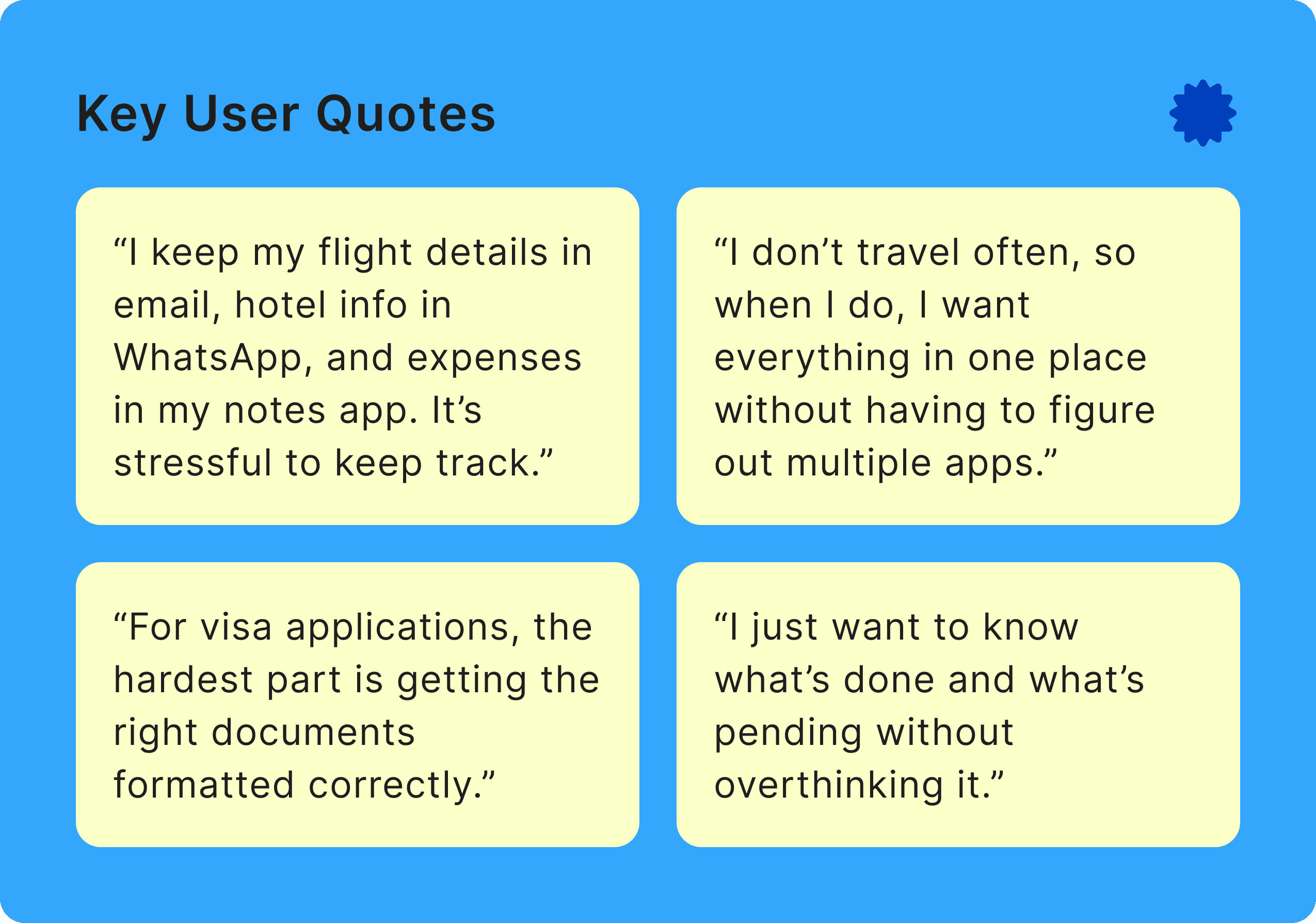 Through competitive analysis and research, I identified gaps in existing travel apps, especially around trip organization, document handling, and admin workflows.