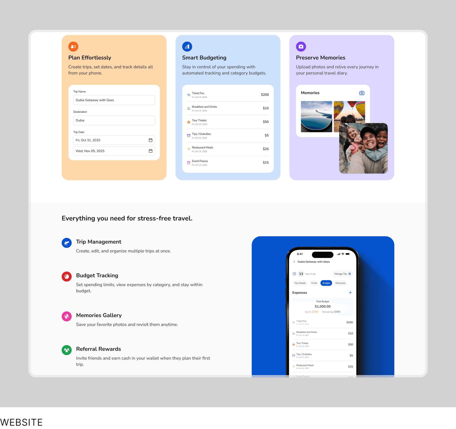 Users store travel documents and save trip memories in one place.