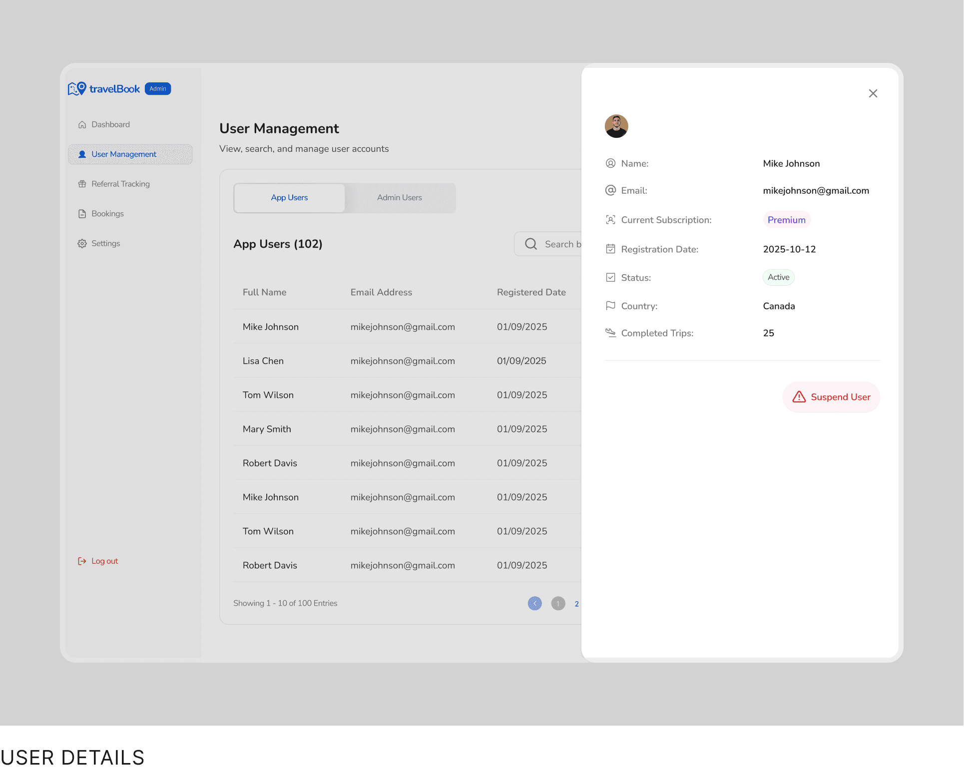 Admins manage both app users and admin users from a single system, with clear roles and access control.