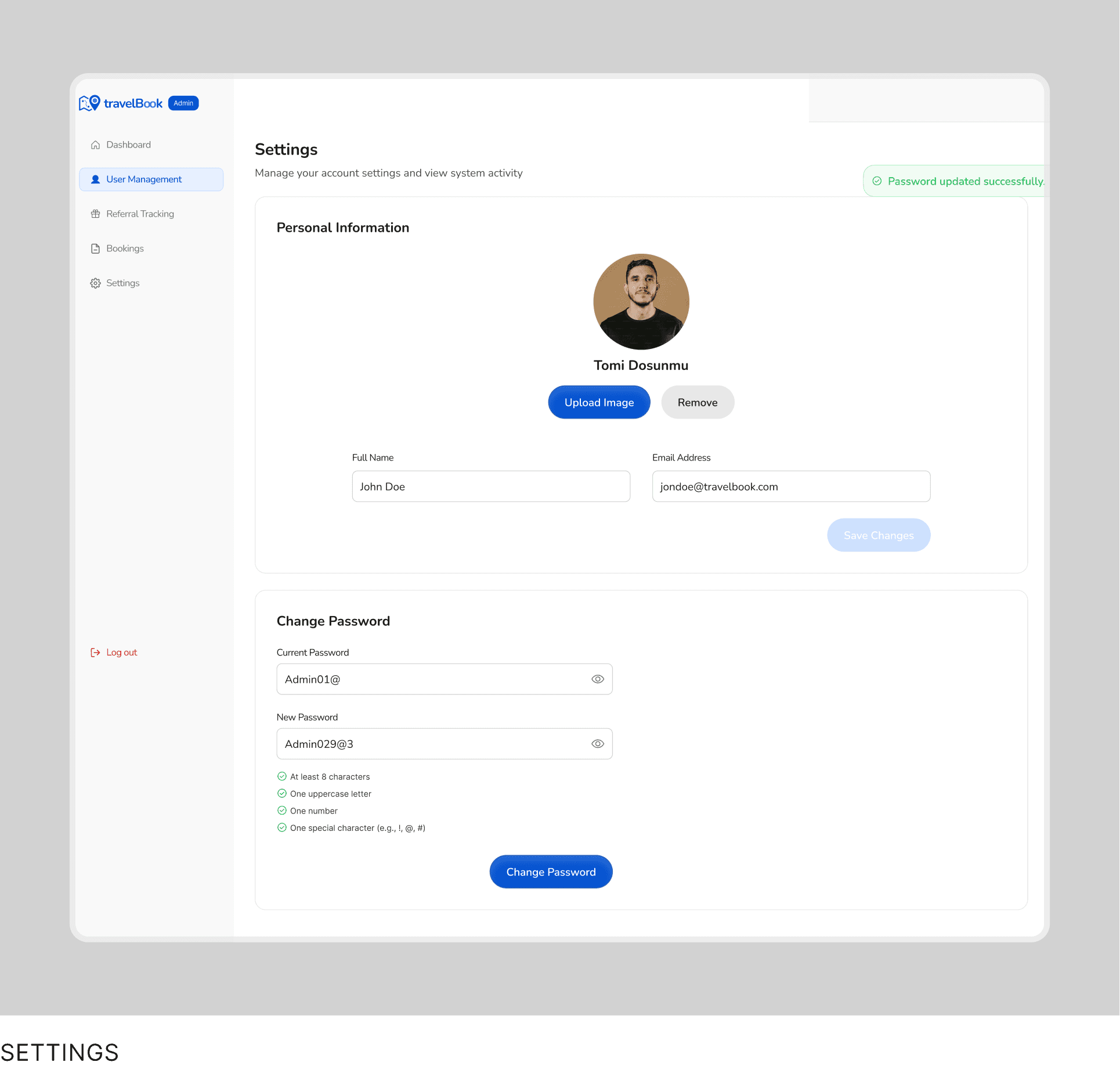 TravelBook was designed as a structured travel assistant. Travelers manage trips independently, while admins support document generation and system operations through a clear and controlled backend.
